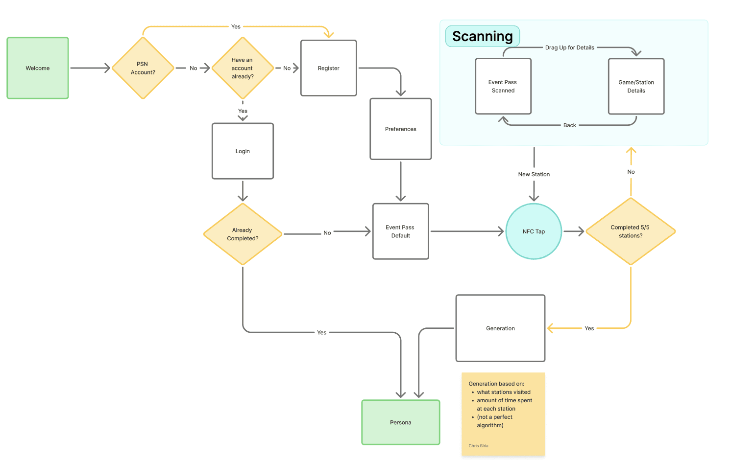 The app acts as a companion interface for the event. It is a mode of interaction, not a tutorial or guide. Thus, after brainstorming, the most natural interaction I found and was the NFC Tap.