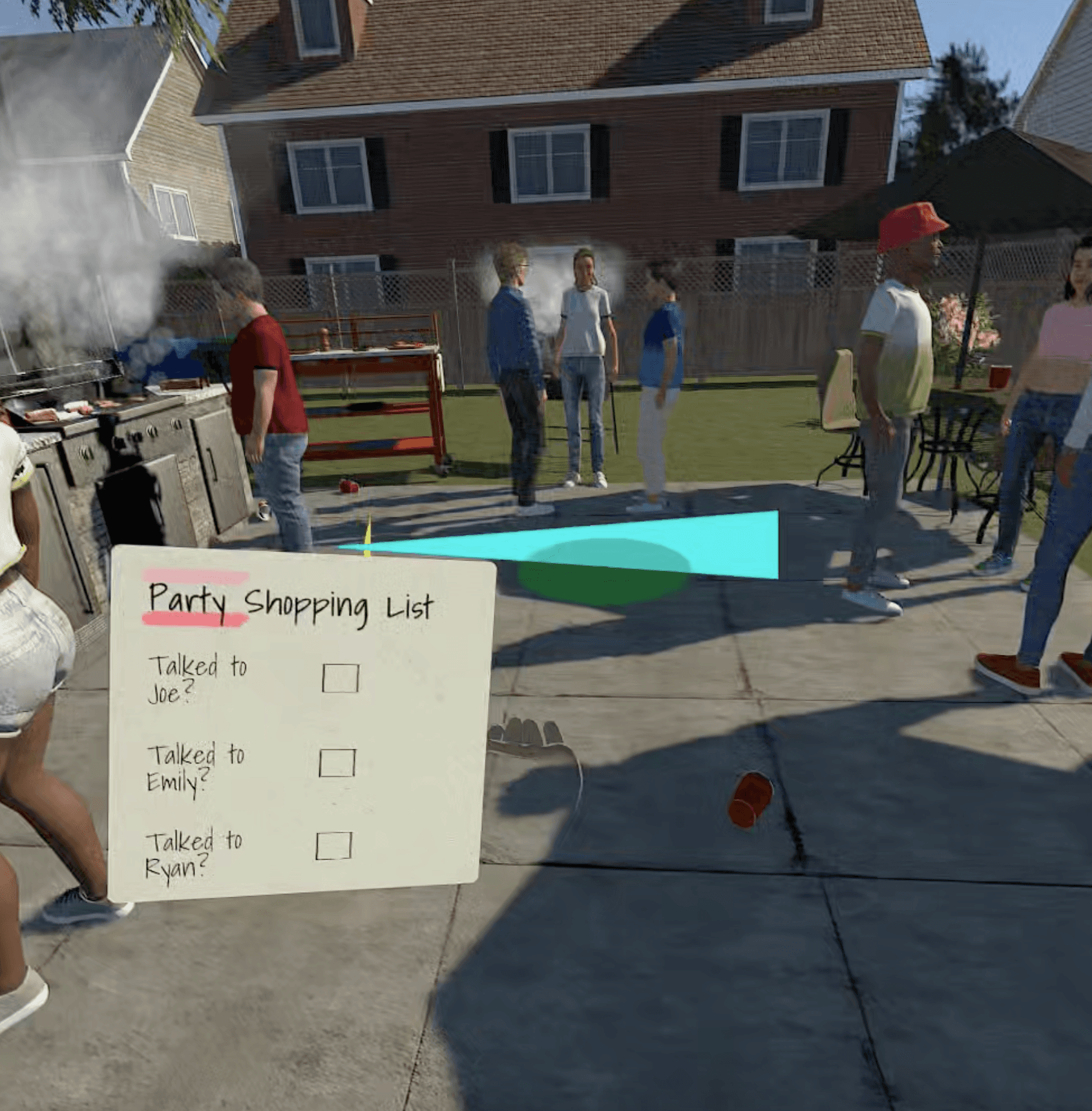 Built for the Meta Quest Pro, the system immerses participants in everyday scenarios, such as a convenience store or a social gathering, while continuously capturing eye-tracking and physiological data.